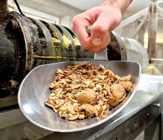Wichtig ist, dass die Nüsse bei Anlieferung trocken, sauber und lagerfähig sind – bitte jedoch nicht geschält. Auf diese Weise können wir schonend pressen und den vollen Geschmack sowie die wertvollen Inhaltsstoffe erhalten. Für die Lohnpressung berechnen wir eine kleine Auftragspauschale sowie einen Kilopreis je angelieferte Menge an Nüssen.