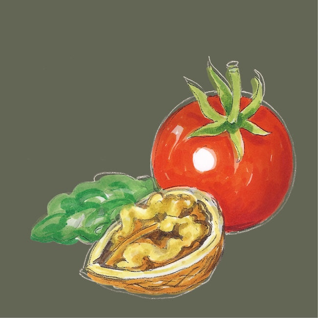 Raps: Anbau der Ölmühle Garting, Region Schnaitsee; Walnüsse: Region Schnaitsee; Tomaten, Petersilie, Salz: über den Handel bezogen. Wenn verfügbar aus Bayern.